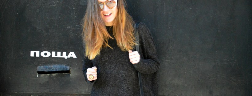 Рокля Zara // сив пуловер H&M // жълт пуловер H&M // чанта с дълга презрамка Orsay // tote bag handmade by Kalina ♥ // пръстен Six // очила – vintage shop @Madrid // спортни обувки Vans
