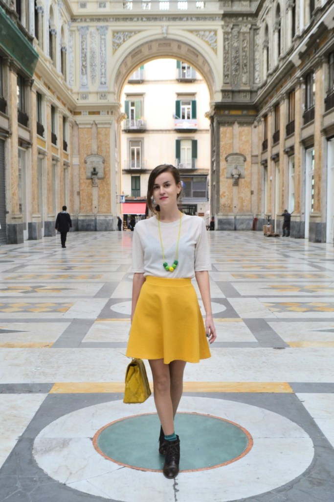 Неапол има същия еквивалент, наречен Galleria Umberto I. Сградата е в историческото сърце на града и влиза в онзи списък, който от ЮНЕСКО са изготвили за световното културно и природно наследство. Мащабите са една идея по-малки, но за сметка на това спокойствието е доста по-апетитно, ето как успях да снимам чудния ми аутфит, посветен на слънцето.