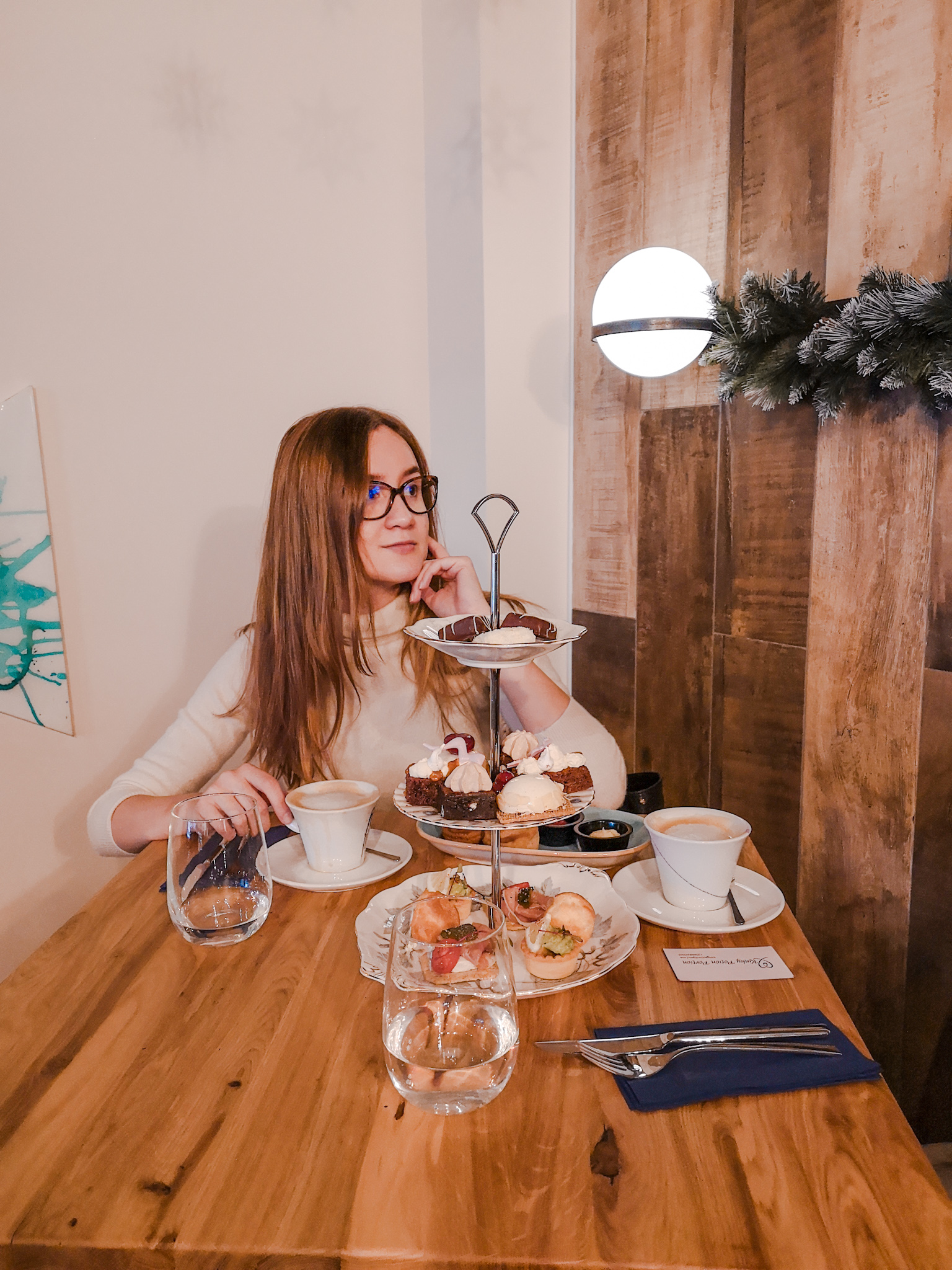 За нас времето спира в 2 следобед. Всичко стартира с кокосово капучино в умилителни чаши и прераства в триетажно плато, пълно с апетитни хапки и любимите ни scones с лимоново масло и сладко от малини.