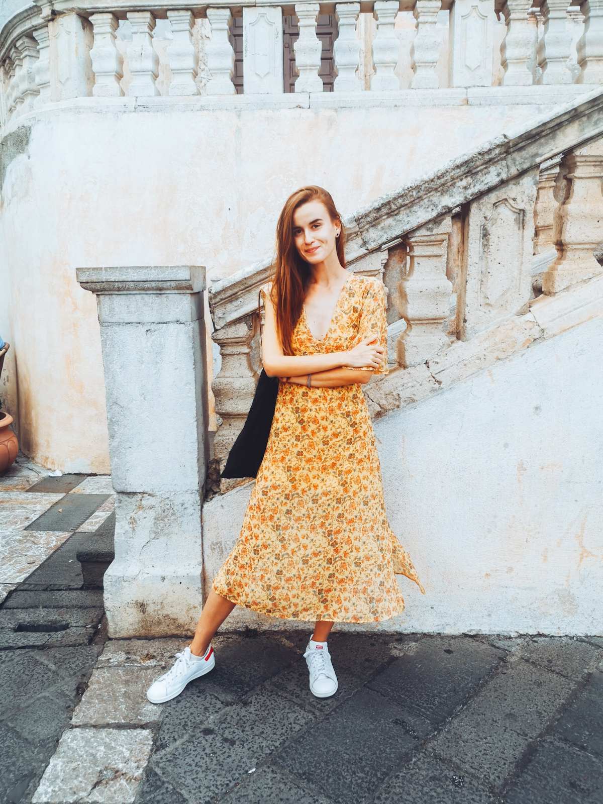 За Таормина задължително ви е необходима рокля с макси (или минимум миди) дължина. За предпочитане е да има ярък принт във флоралната или плодовата гама. С такава съм се сдобила и аз, пазя я специално за градчето от над месец и я преобличам в колата по пътя натам.