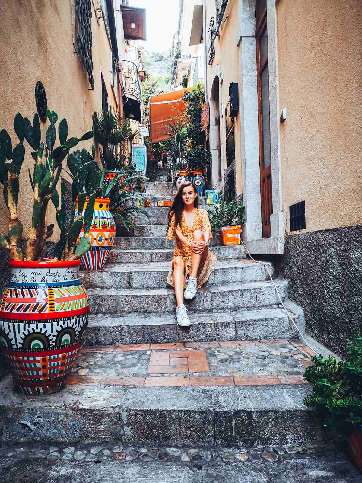 Таормина е кацнала удобно на хълм с гледка към Йонийско море. Това е Монмартърът на Сицилия: град, пълен с артисти и с цветове. Навсякъде има лимони, магазини за керамика, цветни плочки, балкони с падащи сукулентни растения.