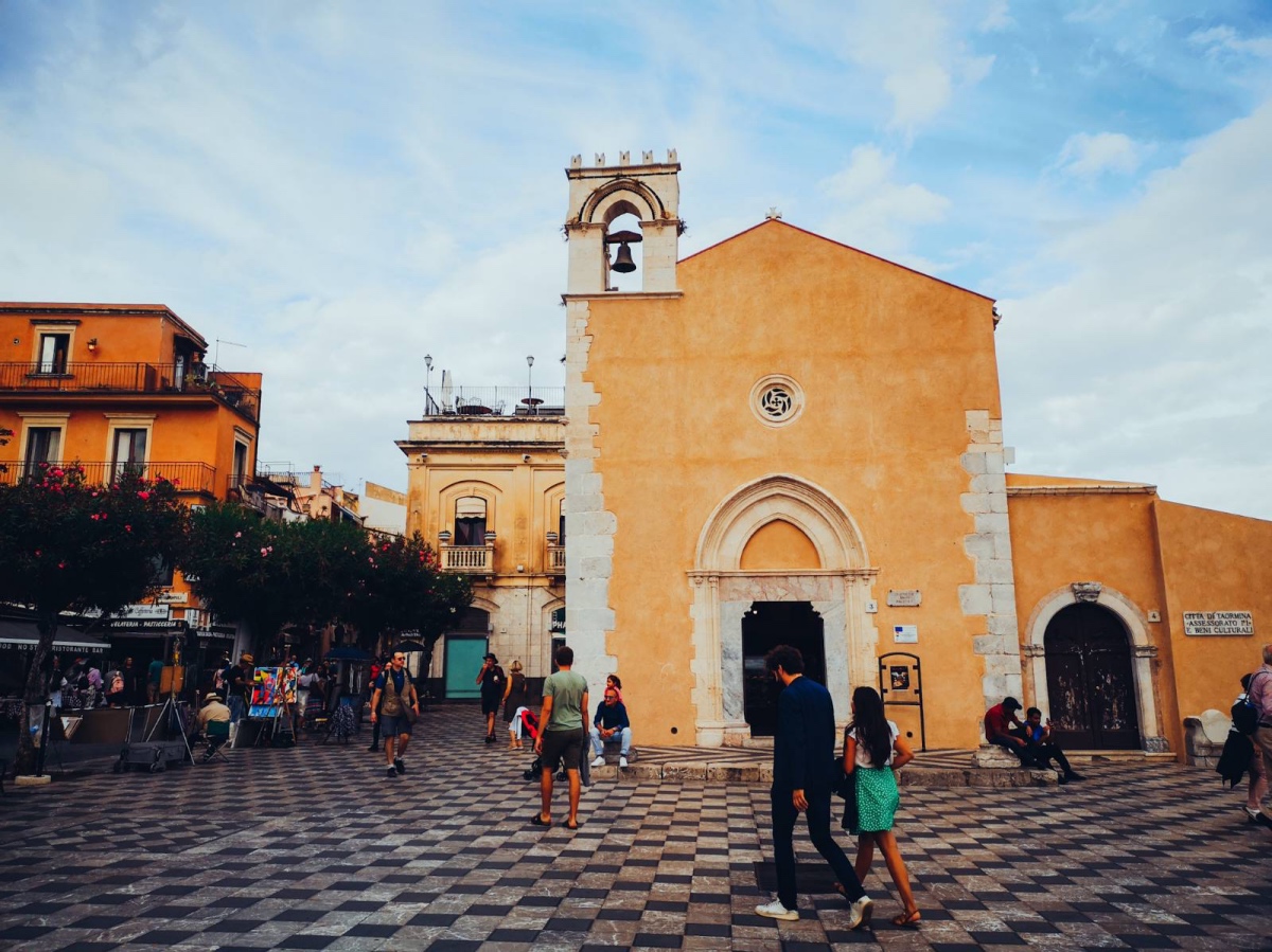 Едно от местата, от които можете да се насладите на гледка към необятното Йонийско море, е piazza IX Aprile // площад “9 април” в Таормина. Историята зад името е забавна. Първоначално това е piazza Sant’Agostino (площад “Свети Августин”). На 9 април 1860 г. по време на литургия в Дуомото (катедралата на Таормина) се разбира за пристигането на Джузепе Гарибалди в градчето Марсала, за да освободи Сицилия от испанско владение и да я направи част от Италия. Впоследствие се оказва, че Гарибалди отива в Марсала един месец по-късно, но за площада остава името “IX април”.