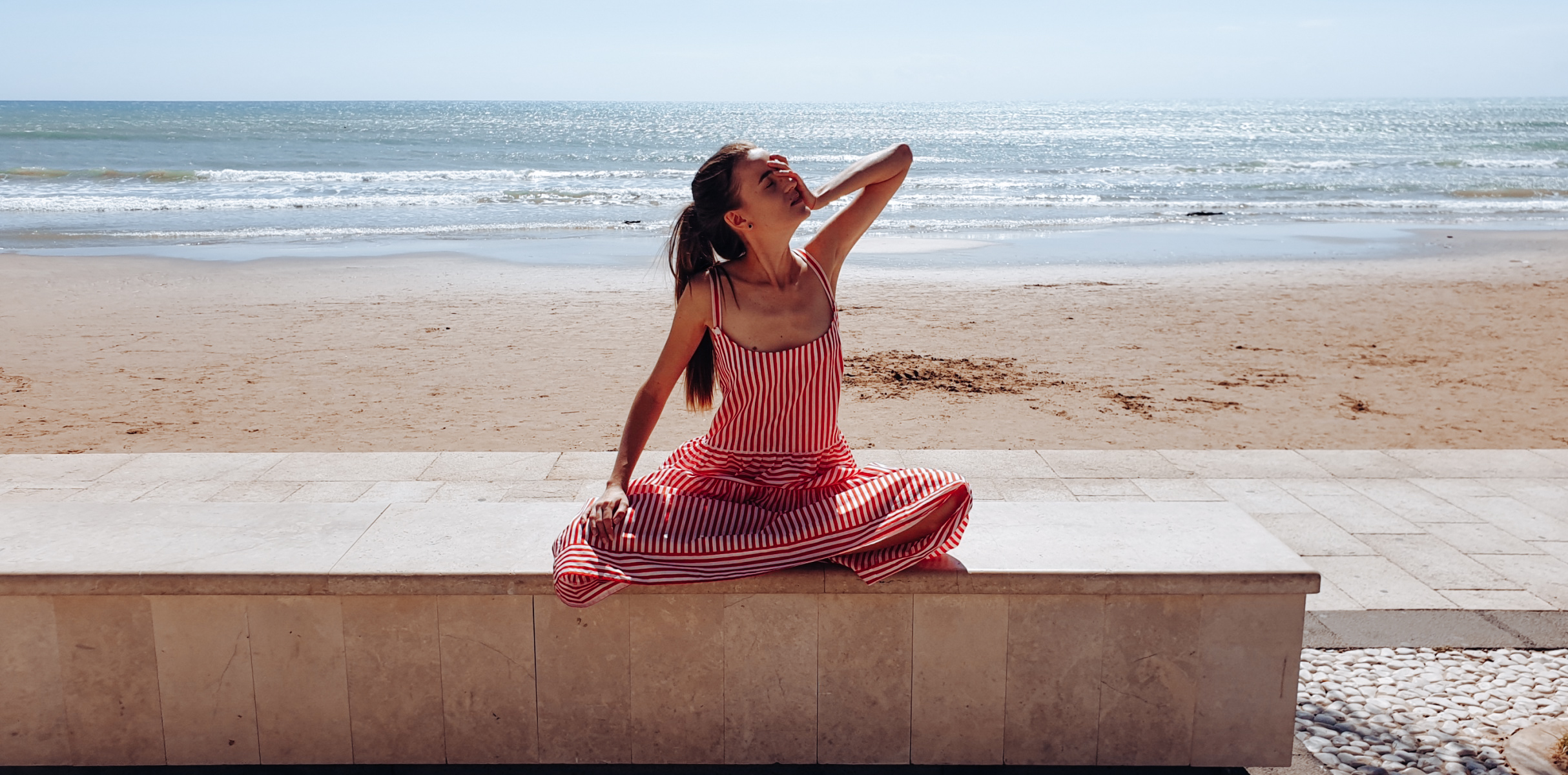 При всички положения обаче ягодовата гранита стои чудесно до роклята ми. Закуска със стил, така я наричам, след което продължавам към плажната ивица. Там е прекалено студено за къпане, но и прекалено красиво, за да не прекарам няколко часа в компанията на вълните.
