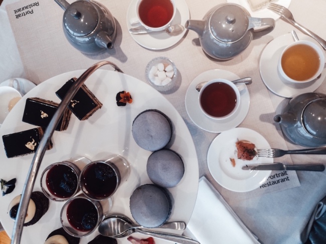 Следобедният чай, на който блажено се насладихме с моите момичета, беше в ресторанта на Националната портретна галерия. Той предлага прилично меню и още по-прилична гледка над Лондон, която си струва да видите. Ако крановете из нея ви смущават, най-добре да изпиете още една каничка с чай.