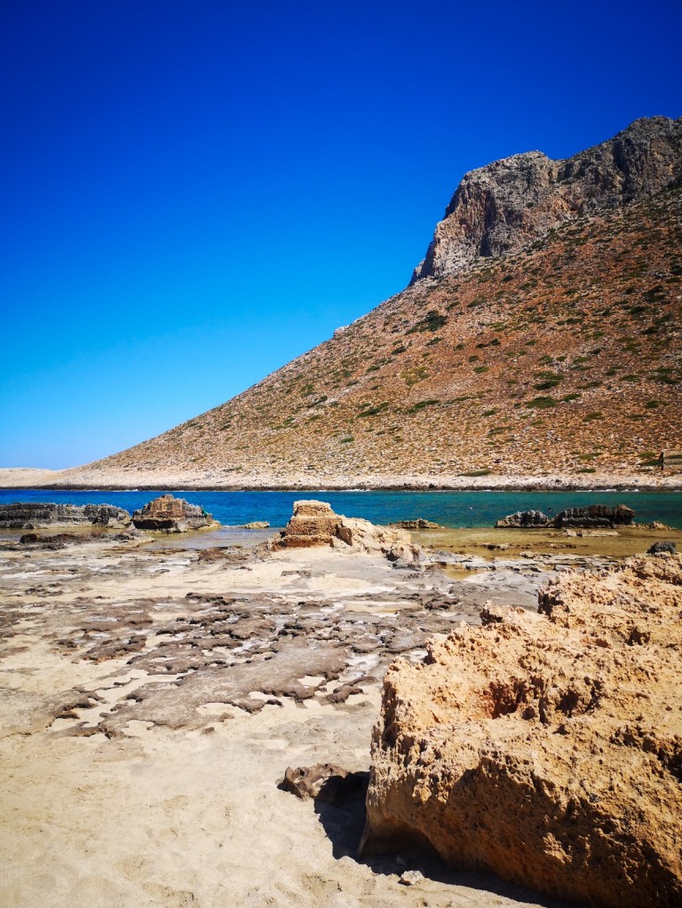 Плаж Балос е друга любима дестинация, а шансът служителят, който ви дава колата под наем, да ви помоли настоятелно да не ходите с нея дотам, е огромен. Ако все пак решите да игнорирате молбата му, е редно да знаете, че 6-километровият така наречен „път“ е неприятен, тесен и за смели шофьори. След като оставите автомобила сред останалите стотици коли (официален паркинг на Балос има, но се пълно за отрицателно време) и евентуално запомните къде сте паркирали по трасето, ви очаква 30-минутен преход надолу до плажа. А пейзажът, който ще се разкрие пред вас, си заслужава всяка от тях.
